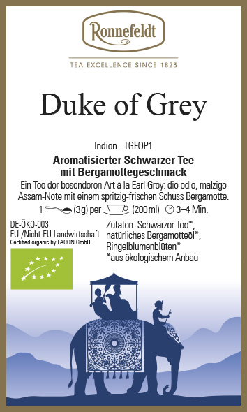 Aromatisierter Schwarzer Tee mit Bergamottegeschmack.   Ein Tee der besonderen Art à la Earl Grey: die edle, malzige Assam-Note mit einem spritzig-frischen Schuss Bergamotte.