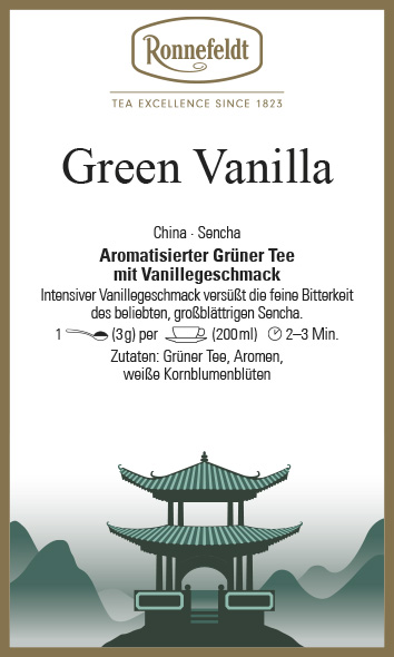 Aromatisierter Grüner Tee mit Vanillegeschmack. Intensiver Vanillegeschmack versüßt die feine Bitterkeit des beliebten großblättrigen Grüner Tee Sencha.