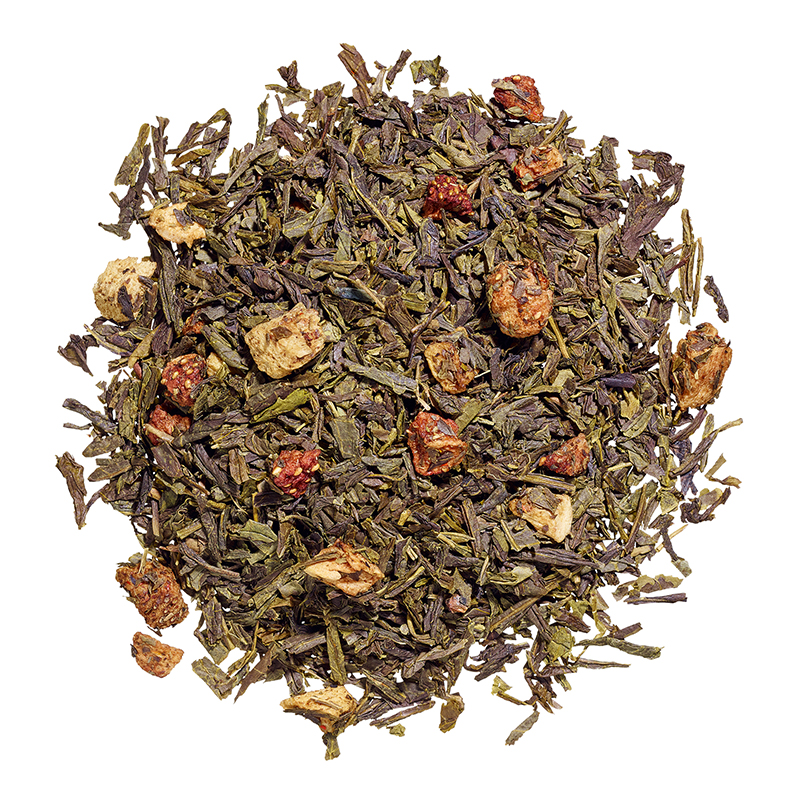 Aromatisierter Grüner Tee mit Mango-Zitrusgeschmack Faszinierende Komposition mit großblättrigem Sencha und ungewöhnlich fein-fruchtigen Aromen und Blüten.