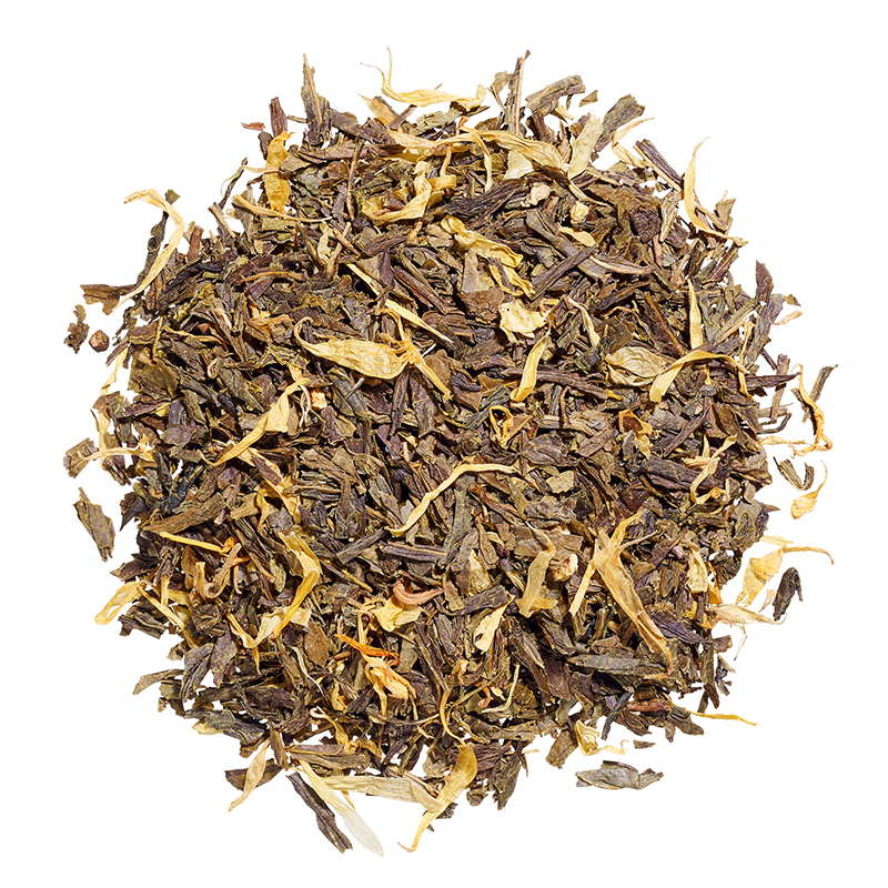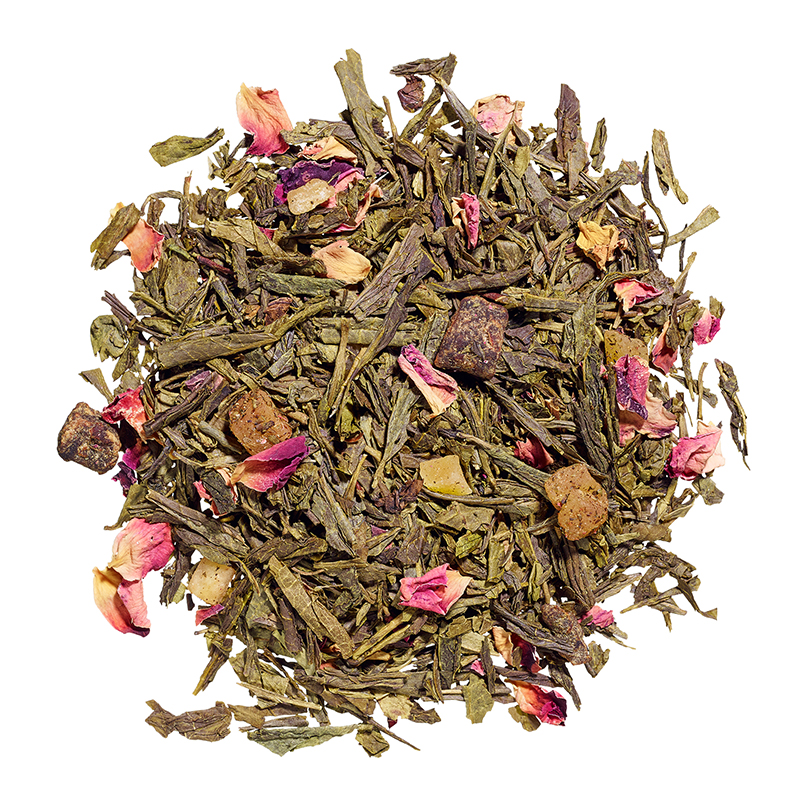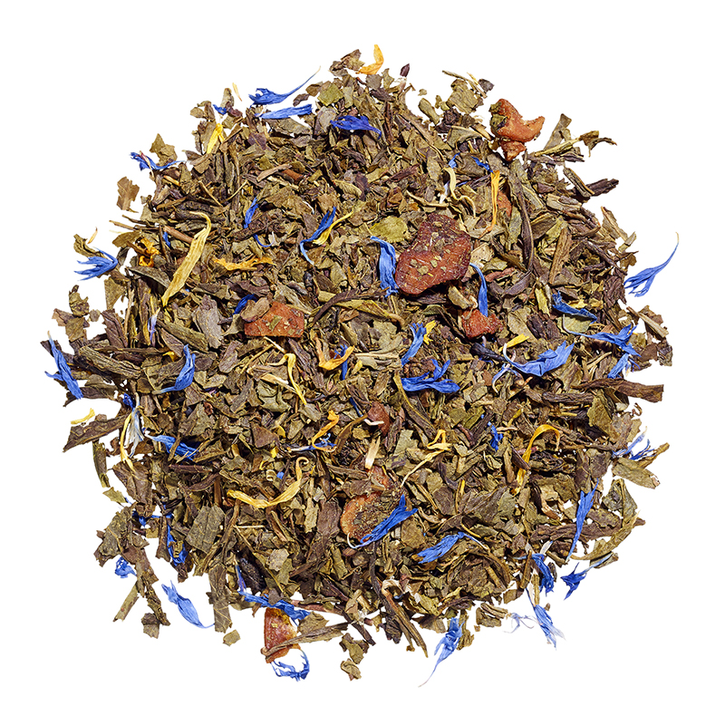 Zutaten: Grüner Tee, Aromen, Rosen-, Ringelblumen-, Kornblumenblüten