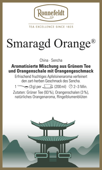 Aromatisierte Mischung aus Grünem Tee und Orangenschale mit Orangengeschmack. Erfrischend fruchtiges Apfelsinenaroma verfeinert den zart-herben Geschmack des Sencha.