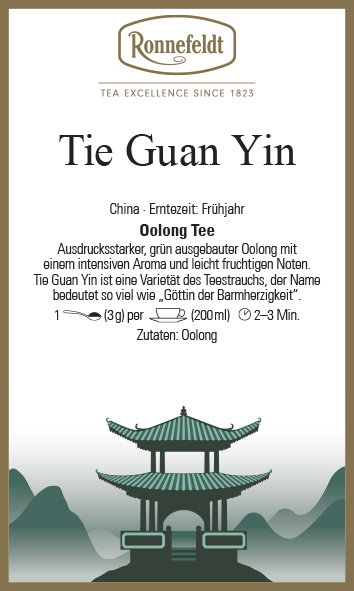 Ausdrucksstarker, grün ausgebauter Oolong mit einem intensiven Aroma und leicht fruchtigen Noten. Tie Guan Yin ist eine Varietät des Teestrauchs, der Name bedeutet so viel wie „Göttin der Barmherzigkeit“.